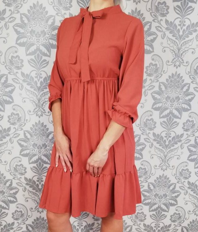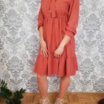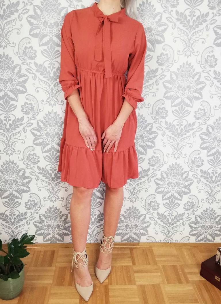 - Modna obleka dolžine do kolen s 3/4 rokavi.